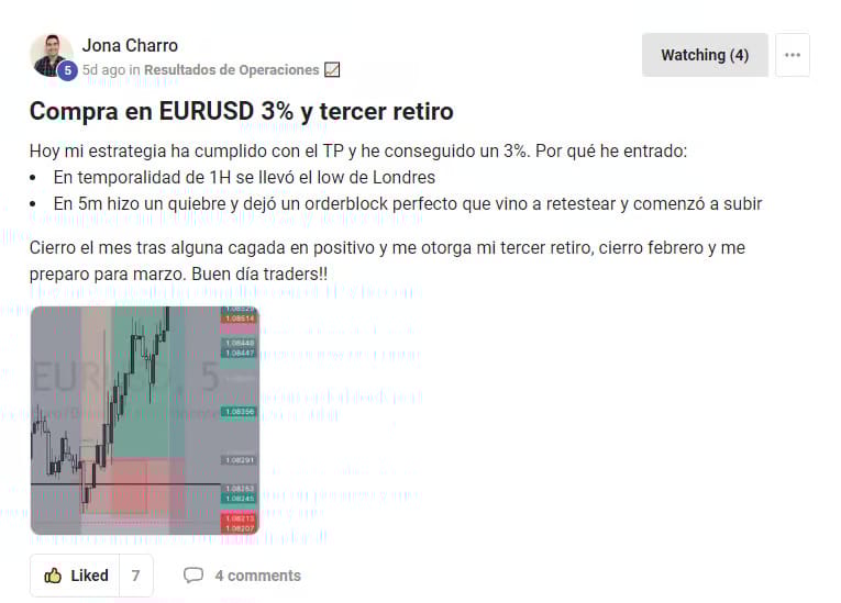 En este caso Jona, empezó con su trading intentando obtener resultados en con cuentas de fondeo pero al no tener una estrategia rentable ni un acompañamiento le llevaba a perder sus cuentas de fondeo, gracias a Pipsologia Club ya va por su tercer retiro.